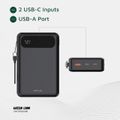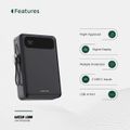 باور بانك جرين ليون توليدو بقوة 10000 مللي أمبير PD 20W مع حزام كابل من USB-C إلى USB-C، ومخرجات USB-A وUSB-C، معتمد للطيران، بشاشة رقمية وشحن سريع - أسود