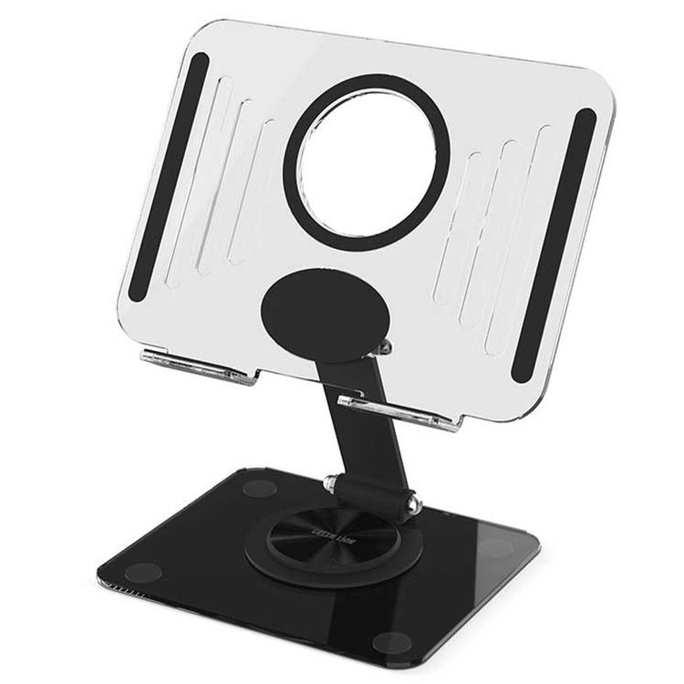 حامل جهاز لوحي شفاف من جرين ليون مع قاعدة دوارة 360°، قابل للطي 180°، سيليكون مضاد للانزلاق، قاعدة دوارة 360° - أسود.