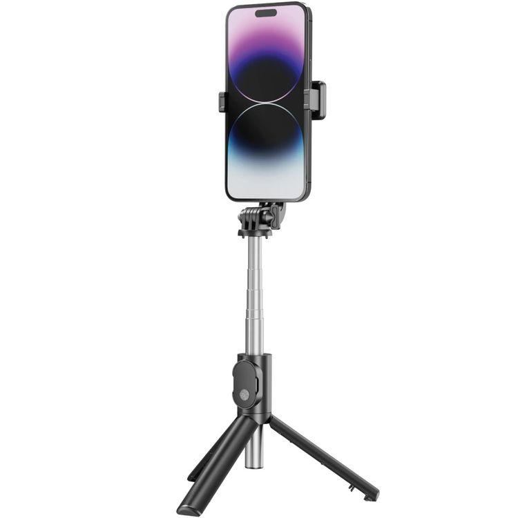 عصا سيلفي ثلاثية القوائم من Green Lion بتصميم مانع للانزلاق، دوران 360°، حامل ثلاثي قابل للطي، سيلفي بلمسة واحدة، سعة بطارية 70 مللي أمبير - أسود