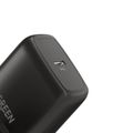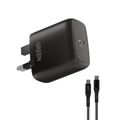 شاحن حائط من جرين ليون بمنفذ Type-C مع كابل من Type-C إلى Type-C، بقدرة توصيل طاقة 20 واط، وقابس بثلاثة أسنان على الطراز البريطاني، وشحن سريع ودعم Auto-ID، وحماية من السخونة الزائدة، ومادة مقاومة للحريق، ووسائل حماية مدمجة - أسود.