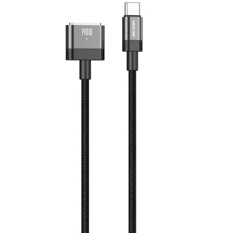 كابل الشحن المغناطيسي جرين ليون من USB-C إلى MagSafe 3 مع مادة من سبائك الألمنيوم، ضوء مؤشر ذكي، عمر يجتاز 10000 انحناء، امتصاص مغناطيسي، متوافق مع ماك بوك - أسود