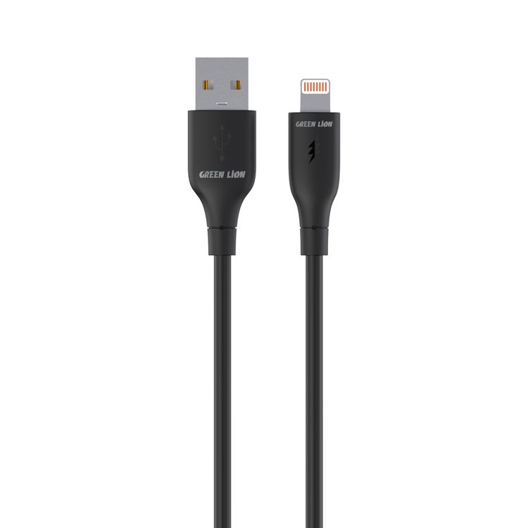 كابل USB-A إلى Lightning PVC من Green Lion بطول 1 متر، سرعة نقل 480 ميجابت في الثانية، 12 وات، شحن ومزامنة، عمر افتراضي يزيد عن 10000 ثنية، آمن ومضمون - أسود