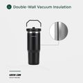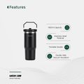 كأس تفريغ من جرين ليون بسعة 900 مل، مصنوع من الفولاذ المقاوم للصدأ، عزل فراغي ذو جدار مزدوج، غطاء بشفاطة قابلة للطي، مقبض محمول، مواد آمنة للأطعمة - باللون الأسود