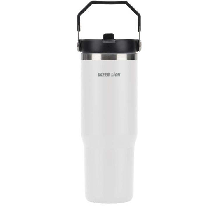 غرين ليون فاكوم تومبلر بسعة 900 مل، مصنوع من الفولاذ المقاوم للصدأ، عزل فراغ مزدوج الجدار، غطاء شفاطة قابلة للقلب، مقبض محمول، مادة مخصصة للطعام - أبيض