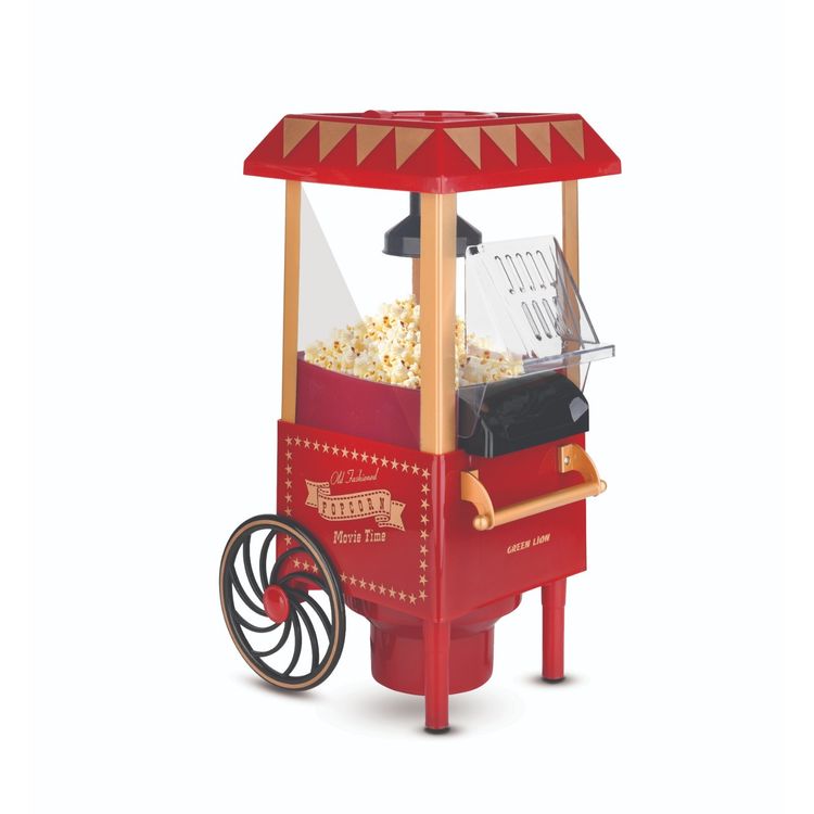 صانعة فشار عتيقة من جرين ليون بسعة 270 مل، بقوة قصوى 1200 وات، مع قابس المملكة المتحدة، زر تشغيل/إيقاف، ملعقة قياس، كوب ألومنيوم، ومقاومة لدرجات الحرارة العالية - لون أحمر.