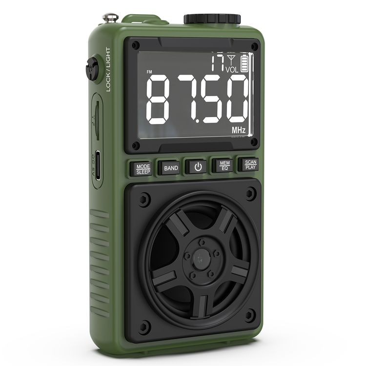 راديو محمول جرين ليون فويجر مع مكبر صوت بلوتوث، مصباح يدوي بقوة 1.2 واط، وقت تشغيل 6-7 ساعات، نطاق نقل 8-10 متر، وضع الفحص التلقائي، وظيفة القفل والنوم، وقت شحن 1.5 ساعة - اللون الأخضر.
