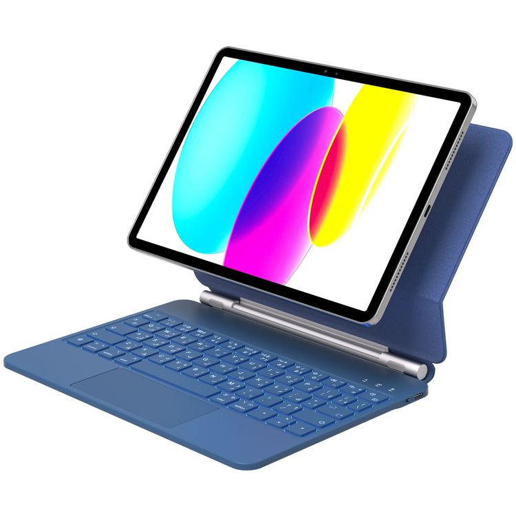 حافظة لوحة مفاتيح سحرية لاسلكية من جرين ليون لجهاز iPad الجيل العاشر، 11 بوصة A16 (2025)، بطارية بسعة 500 مللي أمبير، وظيفة إضاءة خلفية، منفذ شحن USB-C، 7 أوضاع إضاءة ملونة، حامل قلم، سطوع قابل للتعديل، لوحة مفاتيح بمفاتيح مقصية - باللون الأزرق