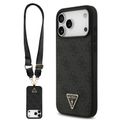 غطاء بتصميم نمط مغناطيسي 4G مصنوع من جلد PU مع حزام كروس بودي وشعار مثلث لهاتف iPhone 17 Pro، يتميز بملف نحيف، حماية من السقوط، تركيب سهل، تغليف مستدام، قبضة مريحة، تصميم خفيف الوزن - أسود