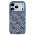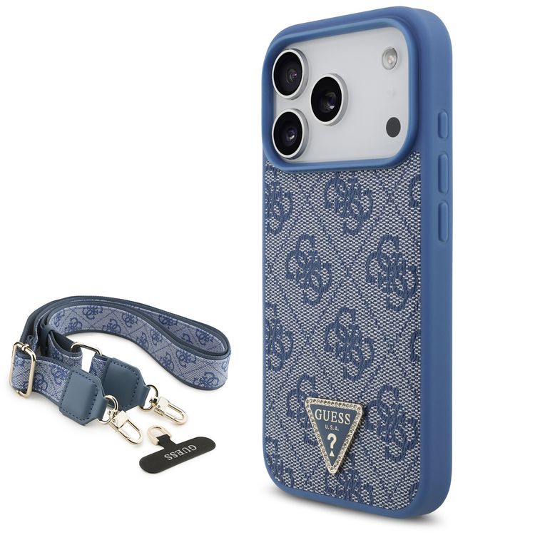 غطاء جلد بو نمط MagSafe 4G مع حزام قصير وعلامة مثلثة لهاتف iPhone 17 Pro Max، بروفايل نحيف، حماية من السقوط، سهل التركيب، تغليف مستدام، مسكة مريحة، تصميم خفيف الوزن - أزرق