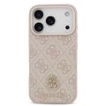 غطاء جلد PU بتقنية MagSafe 4G من Guess مع شعار كلاسيكي ومزين بالكريستال لهاتف آيفون 17 برو، تصميم خفيف الوزن، حماية من الصدمات، سهل التركيب، نحيف، تغليف مستدام، قبضة مريحة - وردي