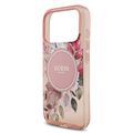 غطاء Guess MagSafe IML بنقشة الزهور وحزام للهاتف iPhone 17 Pro، سهولة التثبيت، تغليف مستدام، قبضة مريحة، حماية من السقوط، تصميم نحيف وخفيف الوزن - لون زهري.