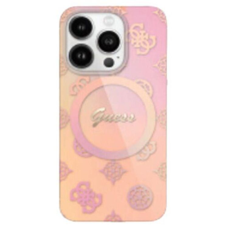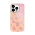 GUESS جراب صلب بتصميم تدرج لون مغناطيسي IML بنقشة الفاوانيا لهاتف iPhone 16 Pro، سهل التركيب، نحيف - زهري