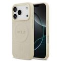 جراب جلدي من جيس MagSafe بشعار كلاسيكي وتصميم ختم ساخن بيوني لجهاز iPhone 17 Pro Max، بتصميم نحيف، يركب بسهولة، تغليف مستدام، مريح في القبضة، وحماية من السقوط - اللون: بيج