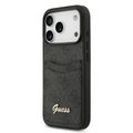 غطاء تخمين PU مع فتحة للبطاقات وشعار معدني مكتوب لهاتف iPhone 17 Pro، تصميم خفيف الوزن، مقبض مريح، سهولة في التركيب، تغليف مستدام، تصميم نحيف - باللون الأسود