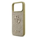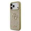 غطاء PU لامع من جيس مع شعار معدني كبير 4G لهاتف iPhone 17 Pro، حماية من السقوط، تصميم نحيف وخفيف الوزن، سهل التركيب، تغليف مستدام، قبضة مريحة - ذهبي