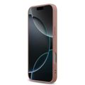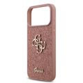 غطاء جلدي PU براق مع شعار معدني كبير 4G لجهاز iPhone 17 Pro، حماية من السقوط، تصميم نحيف وخفيف الوزن، سهل التركيب، تغليف مستدام، قبضة مريحة - وردي