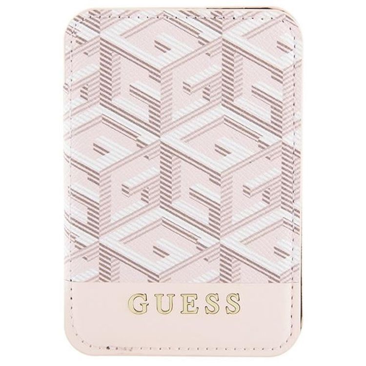 حامل بطاقات مغناطيسي من Guess بمواد من الجلد الصناعي، يحتوي على فتحتين للبطاقات، تصميم قابل للطي، متوافق بقوة مع تقنية MagSafe، نحيف للغاية وخفيف الوزن.