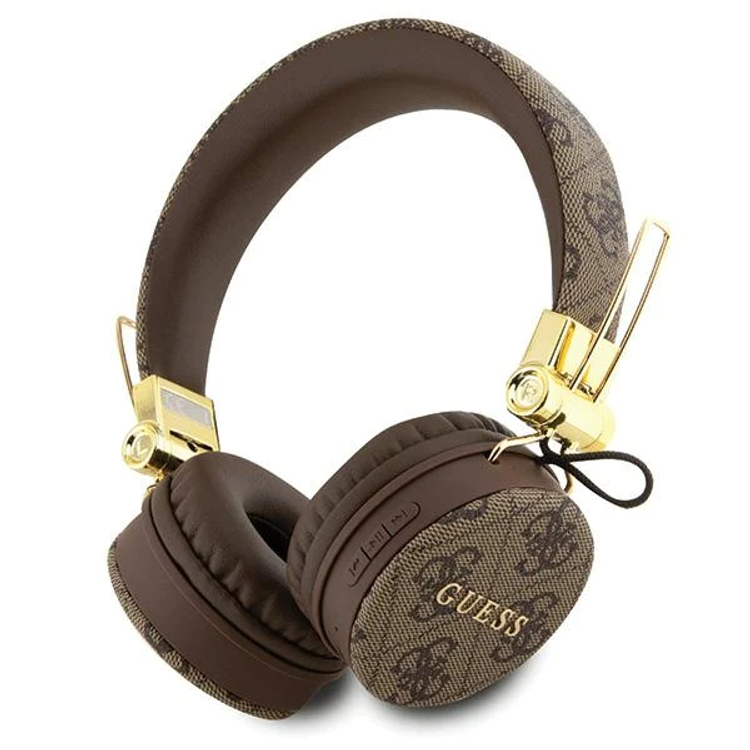 Guess سماعات رأس لاسلكية 4G جلد PU مع شعار معدني - بني