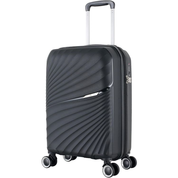 حقيبة أمتعة H.T، حافظة صلبة من مادة البولي بروبيلين (PP)، قابلة للتمدد، مقبض تلسكوبي، مقاومة للخدش، قفل TSA، حجم صغير - أسود