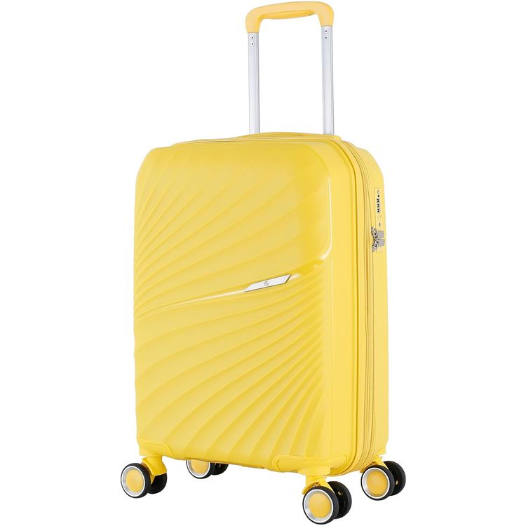 حقيبة أمتعة H.T، حافظة صلبة من مادة البولي بروبيلين (PP)، قابلة للتمدد، مقبض تلسكوبي، مقاومة للخدش، قفل TSA، حجم صغير - أصفر