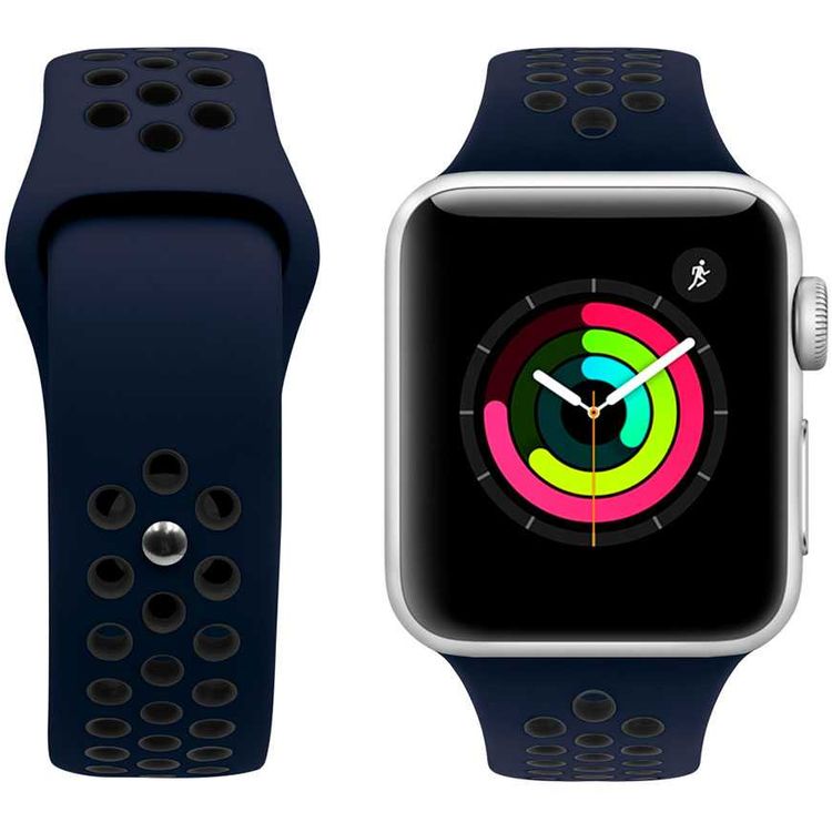 ايجارد من ساعة بورودو نايكي حزام لساعة ابل ، سوار بديل مريح ومناسب ، أشرطة قابلة للتعديل متوافقة مع ساعة ابل 44ميلي / 42ميلي - أسود / ازرق غامق