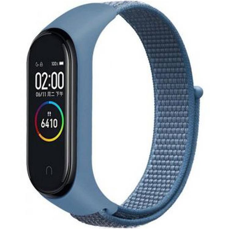 سوار ساعة بورودو آي جارد من النايلون مع جراب مقاوم للصدمات لساعة شاومي مي باند 3، 4، 5، أحزمة قابلة للتعديل، إغلاق بإبزيم - أزرق
