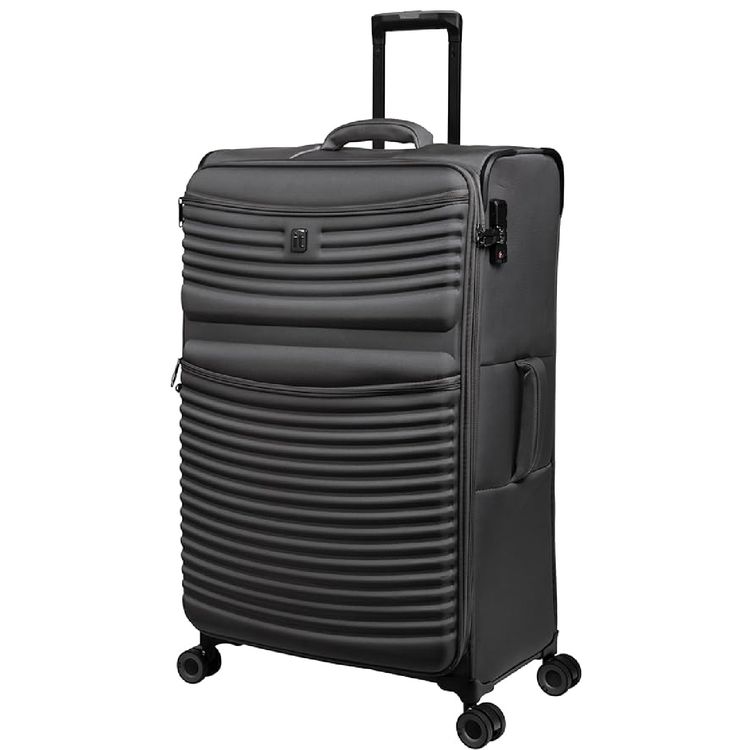 حقيبة سفر خفيفة الوزن وناعمة للجنسين من it Luggage Precursor، حقيبة سفر قابلة للتمدد من البوليستر مع 8 عجلات دوارة ومقبض تلسكوبي وقفل TSA - كبيرة / فحمي