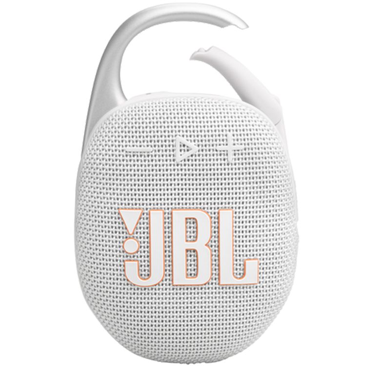 مكبر صوت JBL Clip 5 اللاسلكي المحمول، بلوتوث 5.3، وقت شحن 3 ساعات، عمر بطارية 15 ساعة، مقاوم للماء والغبار - أبيض