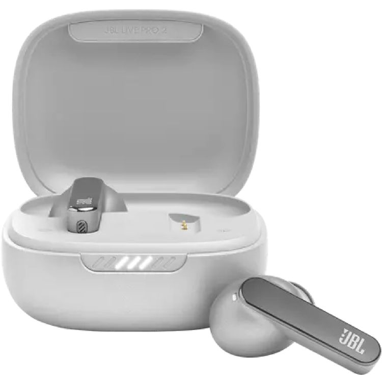سماعات أذن JBL Live Pro 2 اللاسلكية بتقنية إلغاء الضوضاء، ميكروفون مدمج، تقنية إلغاء الضوضاء التكيفية الحقيقية، IPX5، لاسلكية - فضي