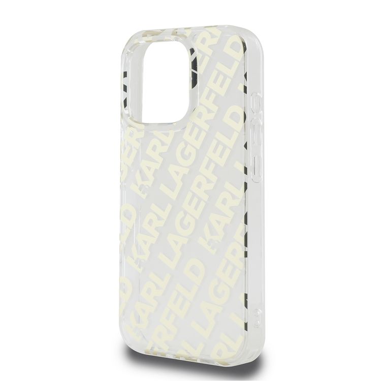 كفر Karl Lagerfeld IML الصلب مع شعار متكرر مطلي كهربائيًا لهاتف iPhone 16 Pro، حماية من السقوط، سهل التركيب، تغليف مستدام - ذهبي