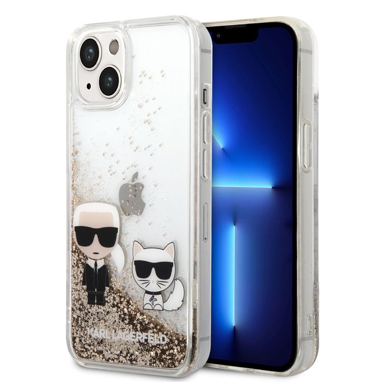 Karl Lagerfeld Liquid Glitter Silicone Case Karl and Choupette Protector iPhone 14 Compatibility - Gold