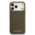 حافظة Karl Lagerfeld MagSafe كاملة الغلاف من الجلد الصناعي مع نسيج Karl لجهاز iPhone 17 Pro Max، تصميم نحيف، حماية من السقوط، سهلة التركيب، تغليف مستدام، مريحة القبضة، تصميم خفيف الوزن - بني