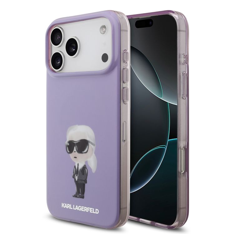 حافظة Karl Lagerfeld MagSafe IML مع تصميم Karl Head Aquarelle لهاتف آيفون 17 برو ماكس، حماية من السقوط، تصميم نحيف وخفيف الوزن، سهولة التركيب، قبضة مريحة، تغليف مستدام - لون بنفسجي.