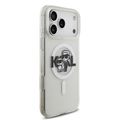 غطاء Karl Lagerfeld MagSafe IML Glitter مع رؤوس Karl & Choupette لهاتف iPhone 17 Pro Max، حماية من الصدمات، تصميم نحيف وخفيف الوزن، تثبيت سهل، قبضة مريحة، تغليف مستدام - شفاف