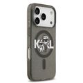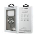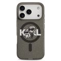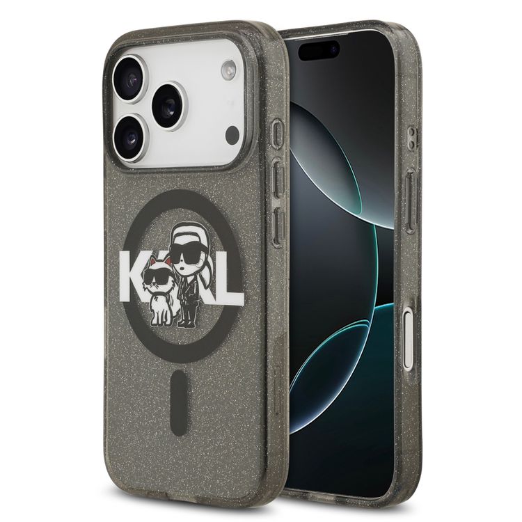 غطاء كارل لاغرفيلد ماج سيف IML جليتر مع رؤوس كارل وشوبيت لجهاز آيفون 17 برو، حماية من السقوط، تصميم نحيف وخفيف الوزن، سهل التركيب، قبضة مريحة، تغليف مستدام - أسود