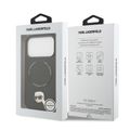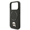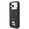 غطاء من جلد PU من كارل لاغرفيلد مع دبابيس رأس كارل لهاتف آيفون 17 برو ماكس، بتصميم نحيف وخفيف الوزن، قبضة مريحة، متوافق مع MagSafe، تغليف مستدام، سهل التركيب، حماية من السقوط - أسود