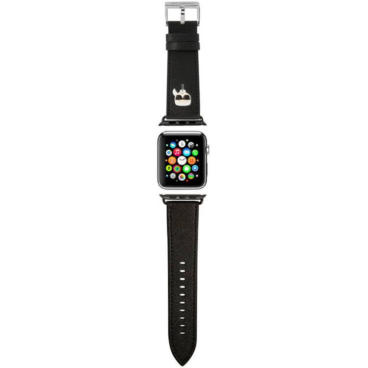 أسود - حزام كارل لاغرفليد لساعة آبل 42/44 مم مصنوعة من جلد سافيانو بشعار ماركة كارل لاغرفيلد