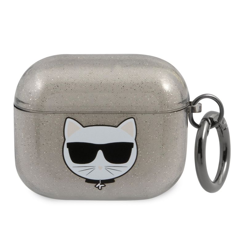 حافظة كارل لاغيرفيلد من مادة تي بي يو لامع لإير بودز 3 - أسود