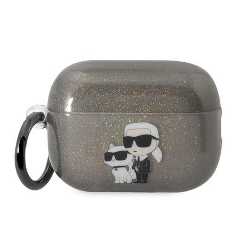 Karl Lagerfeld TPU Glitter NFT Karl & Choupette Airpods Pro 2 جراب - أسود