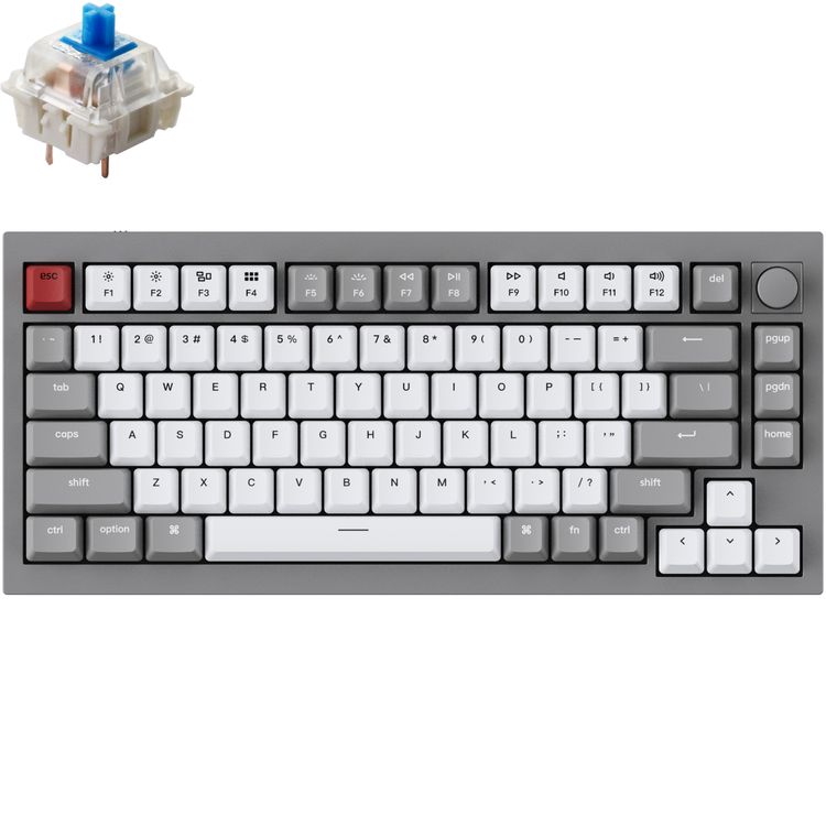 كي كرون لوحة مفاتيح ميكانيكية Q1 QMK Gateron Phantom مزودة بمقبض ومفتاح RGB ومفتاح أزرق وقابل للتبديل السريع المخصص | لوحة مفاتيح الألعاب بتصميم مريح - رمادي فلكي