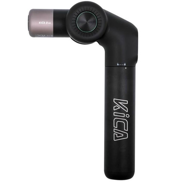 جهاز تدليك Kica Evo بمقبض قابل للتمديد، 6 رؤوس تدليك احترافية، بطارية 1600 مللي أمبير، اهتزاز قوي مريح، ضربة عميقة 12 مم - أسود