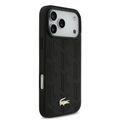 حافظة لاصمدير بجلد PU من لاكوست مع شعار Monogramme وشعار ذهبي لجهاز آيفون 17 برو ماكس، حماية من السقوط، تغليف مستدام، تصميم سهل التركيب، نحيفة - باللون الأسود