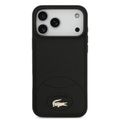 غطاء لاكوست ماج سيف من الجلد الصناعي بتصميم بليس لهاتف آيفون 17 برو ماكس، حماية من الصدمات، تصميم نحيف، تغليف مستدام، تصميم سهل التركيب - أسود