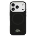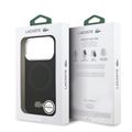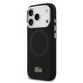 غطاء سيليكون مغناطيسي MagSafe من Lacoste مع شعار معدني لهاتف iPhone 17 Pro Max، حماية من السقوط، تغليف مستدام، تصميم نحيف، سهل التركيب - أسود