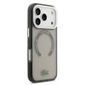 جراب لاكوست MagSafe شفاف مصنوع من TPU و PC مع لمسة نهائية بلورية لهاتف iPhone 17 Pro، حماية من السقوط، تصميم نحيف، تغليف مستدام، تصميم سهل التركيب - رمادي
