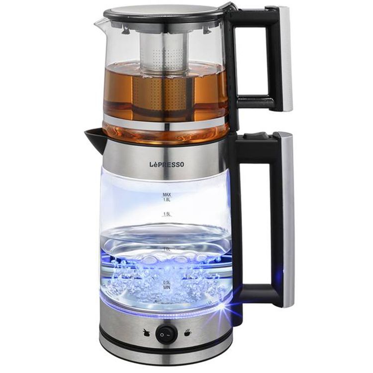 إبريق شاي زجاجي تركي ليبريسو ثيرموبرو مع سعة إبريق شاي 1.2 لتر وسعة غلاية 1.8 لتر، نظام تخمير متقدم، فلتر شاي قابل للفصل، حماية من الجفاف، وضع الحفاظ على السخونة، إيقاف تشغيل تلقائي - أسود