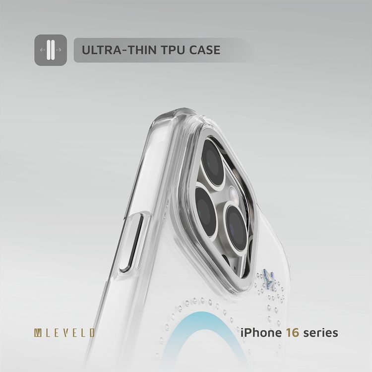جراب Levelo Butterfly Magsafe لهاتف iPhone 16 Pro بلمسة نهائية من الكريستال الفاخر، ومواد TPU فائقة الرقة، وكريستالات سواروفسكي، وتقنية Clearview، ومغناطيس Magsafe قوي - شفاف/متقزحي اللون