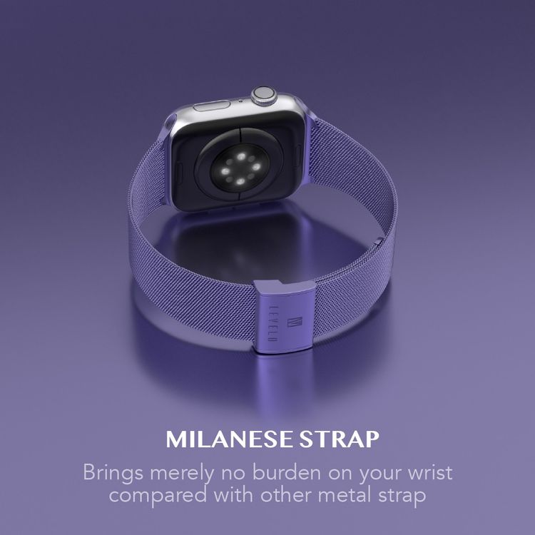 حزام ساعة Levelo Double Milanese لساعة آبل 42/44/45 ملم، مصنوع من الفولاذ المقاوم للصدأ مع مشبك قفل مزدوج قابل للطي، وحزام قابل للتعديل، سهل التركيب - باللون الأرجواني الخزامي.