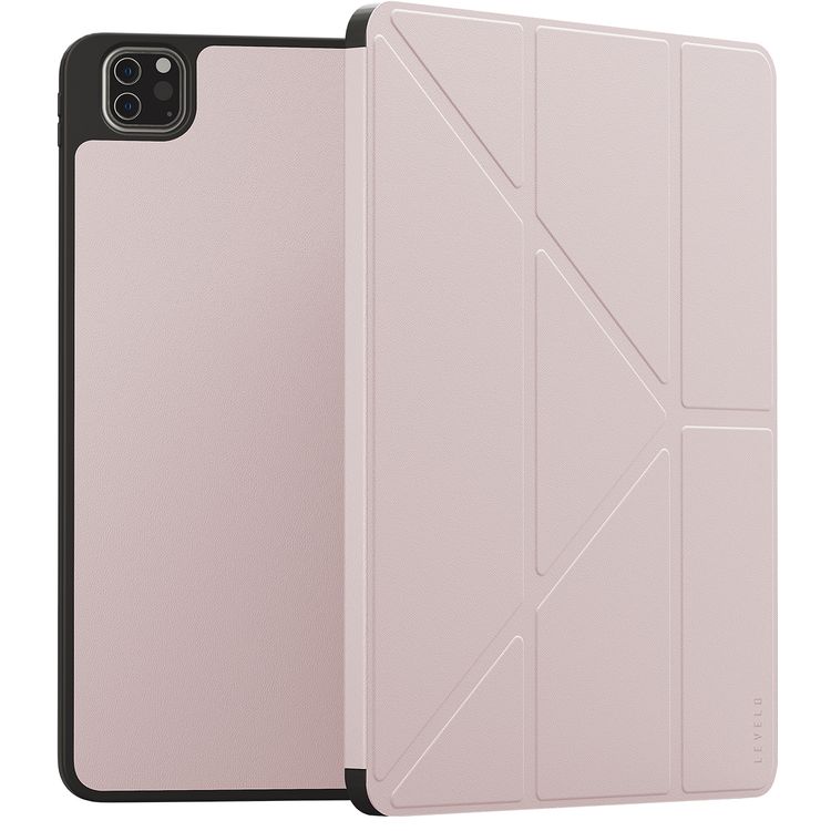 حافظة Levelo Elegante Hybrid الجلدية لجهاز iPad Pro 11" (من الجيل الرابع إلى السادس)، مع إمكانية الوضع العمودي والأفقي، غطاء ممتص للصدمات، حماية بزاوية 360°، تثبيت سهل، فتحات دقيقة التقطيع - اللون وردي.