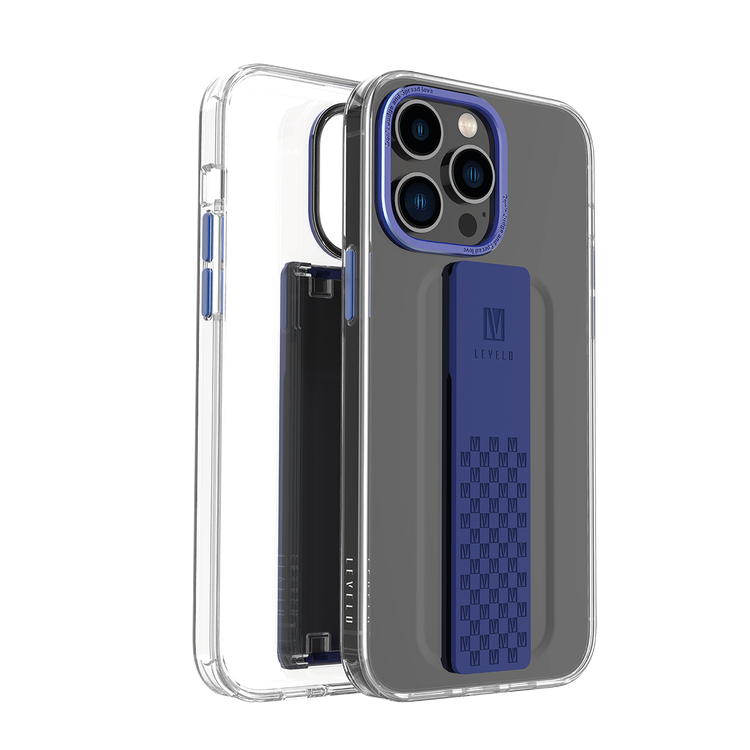 غطاء ليفيلو جرافيا IMD الشفاف مع قبضة إضافية لأيفون 14 برو ماكس - أزرق